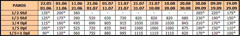 U smenama sa zvezdicom *, u slučaju sopstvenog prevoza cena paket aranžmana se umanjuje za 25€ po osobi.