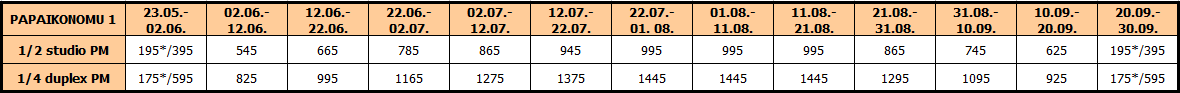 Cene su izražene u eurima po studiju/apartmanu na bazi najma za 10 noćenja