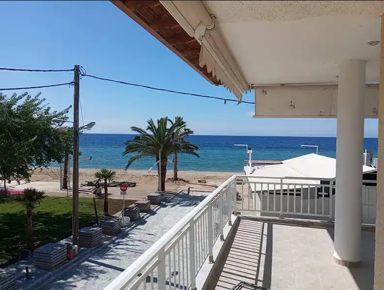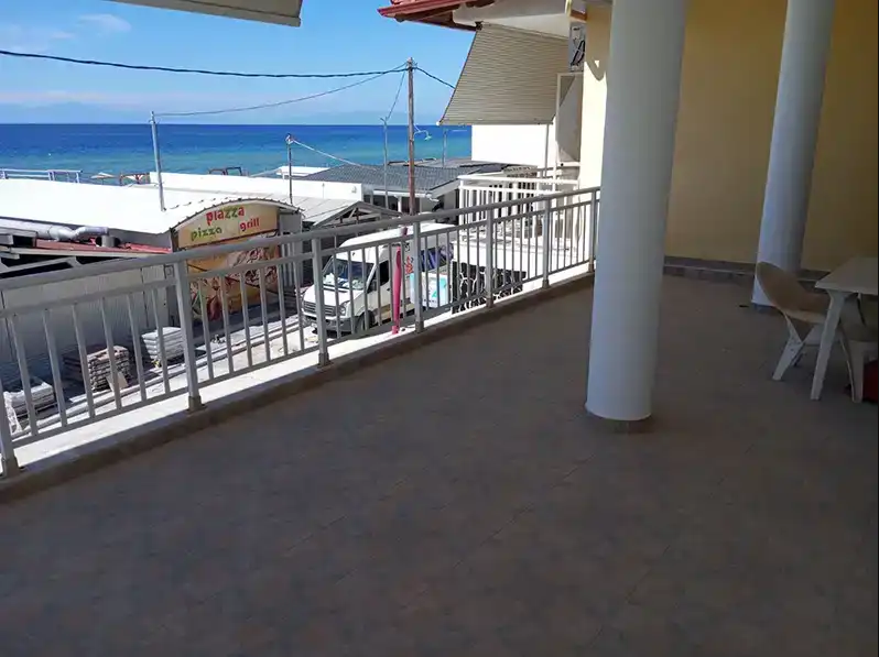 Vila Pastazi se nalazi u prvom redu, na 20m od plaže i 200m od centralnog dela Nea Flogite, odmah iza beach bara Pastazi. Dupleksi 1/4 se nalaze na prvom spratu, imaju ugaone terase (jedan duplex sa direktnim pogledom na more, a drugi duplex sa bočnim pogledom na more i pogledom na ulicu). Poseduju dve spavaće sobe, jednu sa francuskim ležajem i drugu sa dva singl ležaja, kao i kuhinju koja je odvojena (za maksimalno četiri odrasle osobe i jedno dete do 6 godina). Apartman 1/3 se nalazi na prvom spratu i ima terasu sa direktnim pogledom na more. U spavaćoj sobi se nalaze dva singl ležaja , a u kuhinji se nalazi jedan singl ležaj ( za maksimalno tri odrasle osobe i jedno dete do 6 godina). Promena posteljine je na 5 dana, ima TV sa lokalnim kanalima, wifi, klima uredjaj( korišćenje uključeno u cenu ). Vila nema obezbeđen parking.