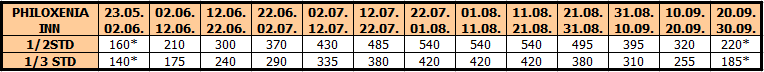 – Turističku taksu: 2€ po sobi dnevno (plaća se na licu mesta, direktno vlasniku i podložna je promeni).