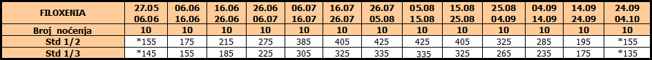 Cene su izražene u evrima po osobi – paket aranžman (smeštaj+prevoz iz Beograda) za 10 noćenja