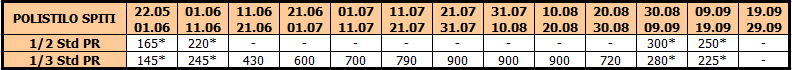 U smenama sa zvezdicom *, u slučaju sopstvenog prevoza cena paket aranžmana se umanjuje za 25€ po osobi.