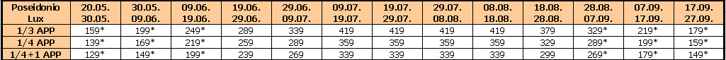 U smenama sa zvezdicom *, u slučaju sopstvenog prevoza cena paket aranžmana se umanjuje za 25€ po osobi.