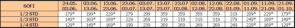 Za sopstveni prevoz cena aranžmana se umanjuje za 30€ po osobi, a 20€ za smene označene ZVEZDICOM (*)