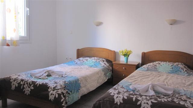 Smeštaj: Vila raspolaže apartmanima za tri do pet osoba. (peta osoba može biti dete do 12 godina-nema sopstveni ležaj). Apartmani se sastoje od spavaće sobe sa dva spojena singl kreveta i kuhinje u kojoj se nalazi sofa na razvlačenje, predviđena za spavanje još dve osobe. Apartmani se nalaze u spuštenom prizemlju, na prvom i drugom spratu. Svi apartmani imaju TV, TWC, kompletno opremljenu kuhinju, klima uredjaj (korišćenje uključenu o cenu), terasu. Vila ima peškire.