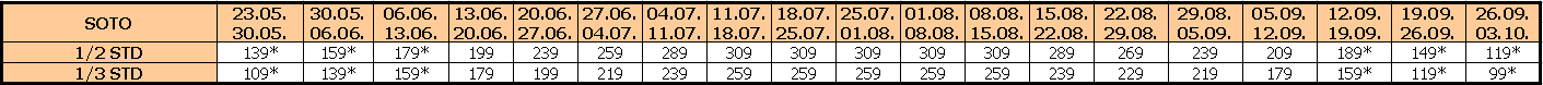 Za sopstveni prevoz cena aranžmana se umanjuje za 30€ po osobi, a 20€ za smene označene ZVEZDICOM (*)