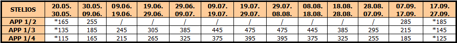 Cene su izražene u evrima po studiju / apartmanu, najam za 10 noćenja