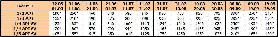 U smenama sa zvezdicom *, u slučaju sopstvenog prevoza cena paket aranžmana se umanjuje za 25€ po osobi.