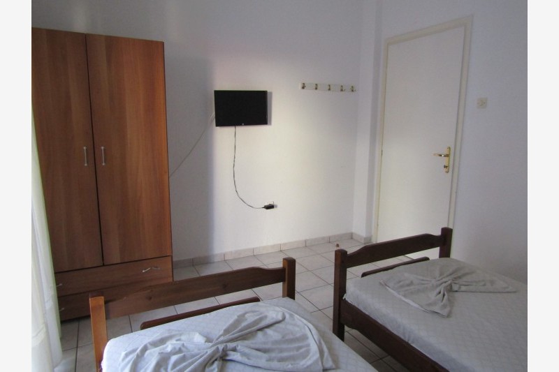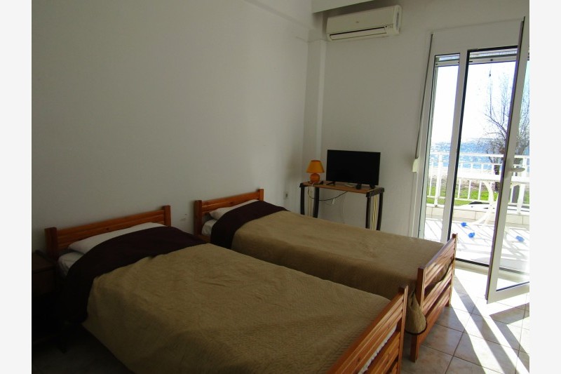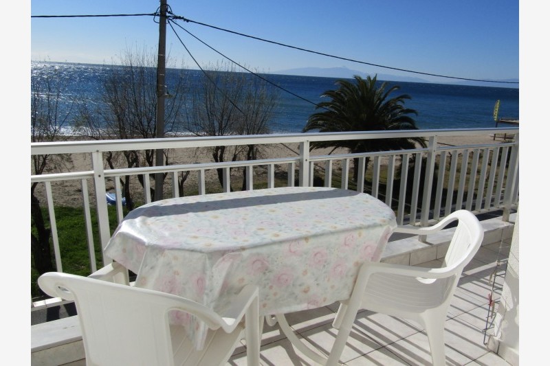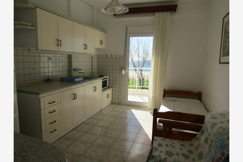 Vila Tasos 1 se nalazi na samoj plaži Nea Flogite, u delu ka Nea Plaji i u neposrednoj blizini naše vile Andonis. Raspolaže dvokrevetnim, trokrevetnim, četvorokrevetnim i petokrevetnim apartmanima kao i četvorokrevetnim dupleks apartmanima. Većina smeštajnih jedinica, izuzev dvokrevetnih i trokrevetnih apartmana, ima direktan pogled na more. Svaki apartman poseduje osnovno opremljenu kuhinju sa mini šporetom, kupatilo, terasu, TV i klima uređaj čije je korišćenje uključeno u cenu najma apartmana. Promena posteljine je jedanput u toku boravka a u objektu postoji i mogućnost korišćenja WiFi interneta.