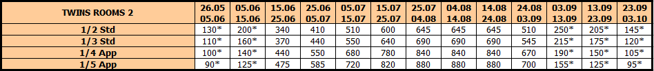 *Cene označene zvezdicom * su cene paket aranžmana u VANSEZONI (uračunat smeštaj i autobuski prevoz iz Niša, bez teritorijalne doplate za prevoz) po osobi.* Teritorijalna doplata za autobuski prevoz severno od Niša: Beograd – 10 evra, Novi Sad – 20 evra