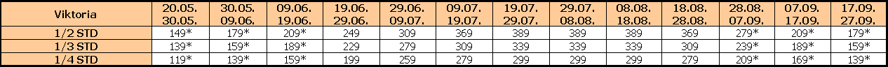 Za sopstveni prevoz cena aranžmana se umanjuje za 30€ po osobi, a 20€ za smene označene ZVEZDICOM (*)