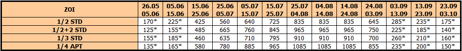 U smenama sa zvezdicom *, u slučaju sopstvenog prevoza cena paket aranžmana se umanjuje za 25€ po osobi.